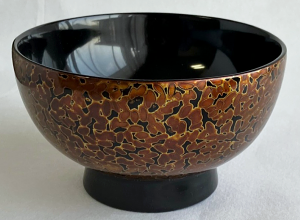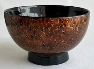内側が黒塗りのお椀は珍しいです。普段使いにお楽しみください。