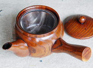 天然木を使用した木目の美しい拭き漆塗りの急須です。