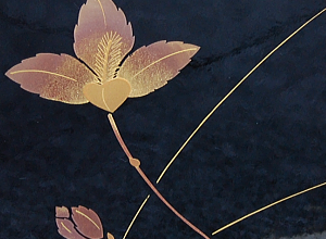 淡い色の蒔絵が付けられた優しい雰囲気の花生けです。